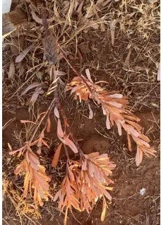 You can see how sad some of the plants look. On the left is Lotus australis, and theright one of our newly planted Banksia plants. Sadly none of the three Banksia plants planted here in 2024 survived through to the end of March.